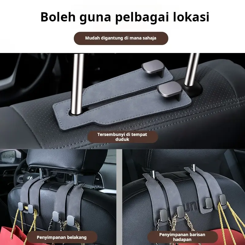 【Car Seat Back Double Hook – Suede Hook】 – The soft leather headrest hook fits better with your car seat, turning your headrest into a convenient storage space for storing groceries, clothes, handbags, hats, etc., leaving passengers with rear space.
